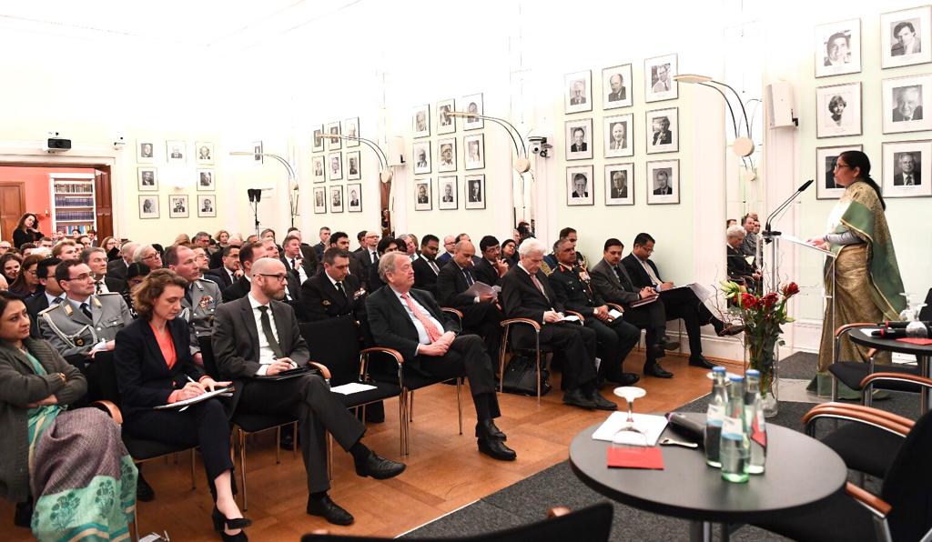 Raksha Mantri addressed a select audience at the prestigious German think tank DGAP (German Council on Foreign Relations), on ‘India’s Defence Engagement in a Disordered World: Principles, Priorities and Partnerships’. RM highlighted India’s defence priorities and engagements with the aim to contribute towards a secure, stable and peaceful environment and enable greater prosperity for all. RM emphasised the need for like-minded liberal democracies with common values and common interests, such as India and Germany, to build on the commonality of assessments on strategic issues and work together to strengthen the rules based world order.
