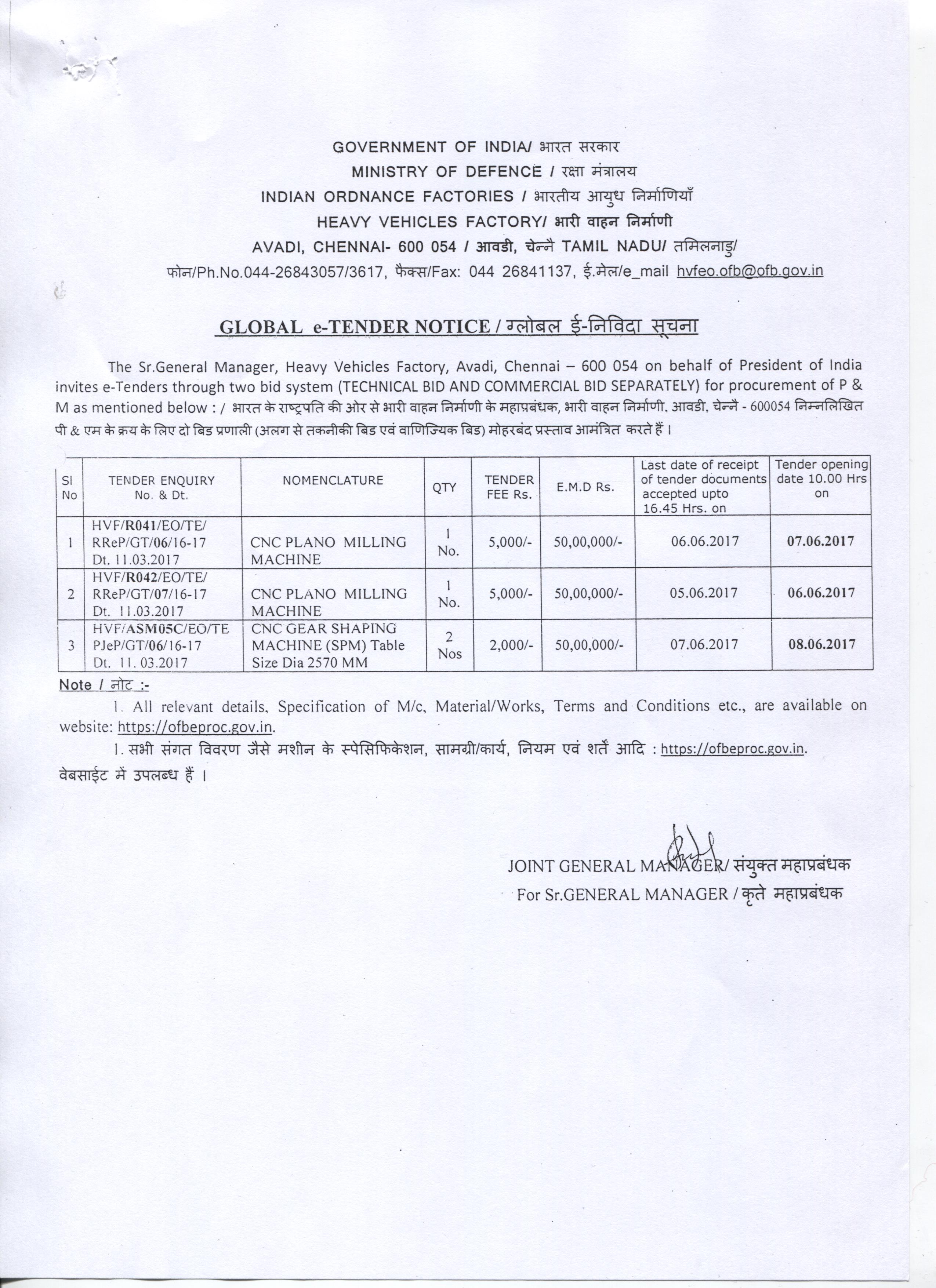 • Intimation of Global Tender from Defense Research and Development Organization, Ministry of Defence, Government of India