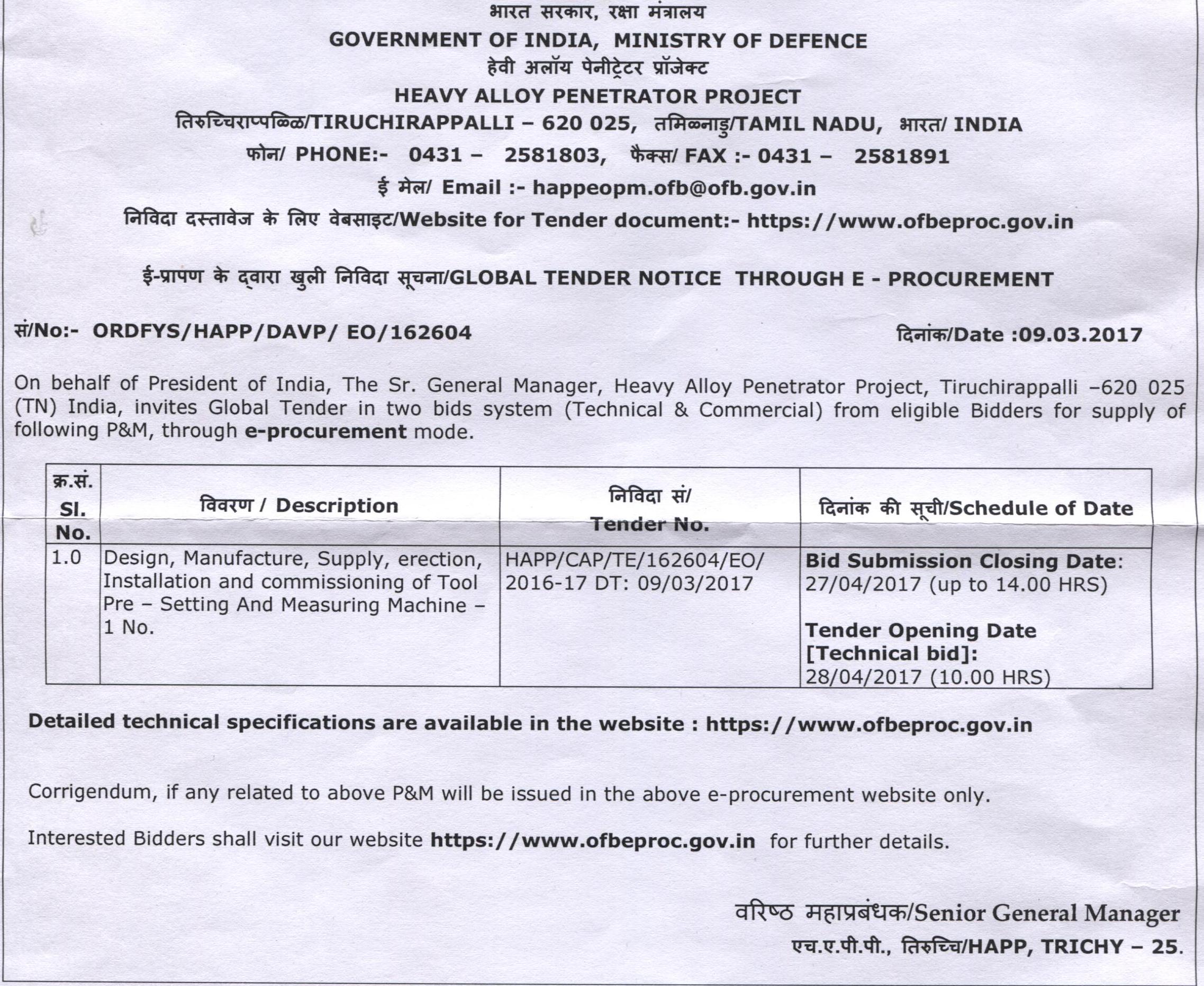 • Tender from heavy Alloy Penetrator Project for supply of Iron Powder