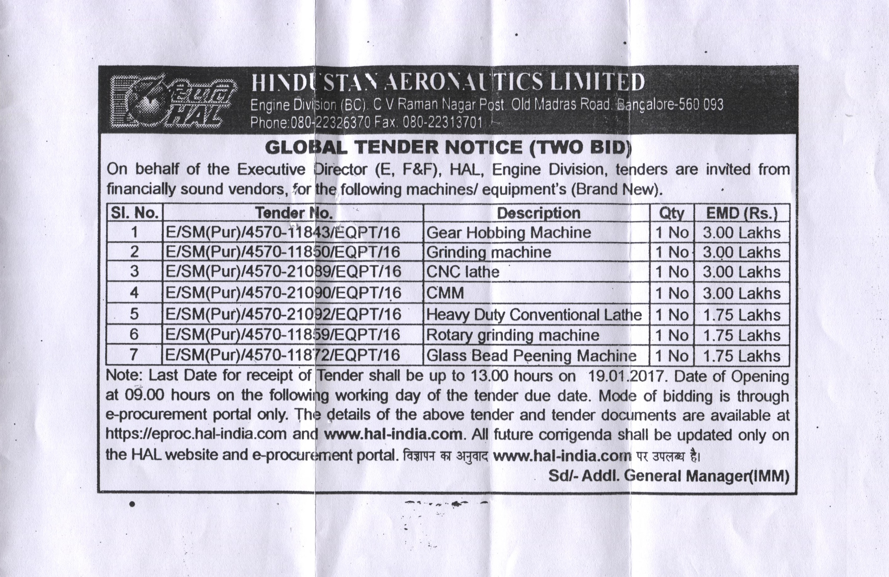 • Notice inviting Global e-tender (NIT-10/2016-17)